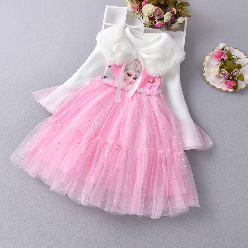Girl Foreign Dress Autumn Winter Style Plus Suede Ice Chic Edge Love Salsa Princess Dresses Princess Dresses Children Christmas Costumes