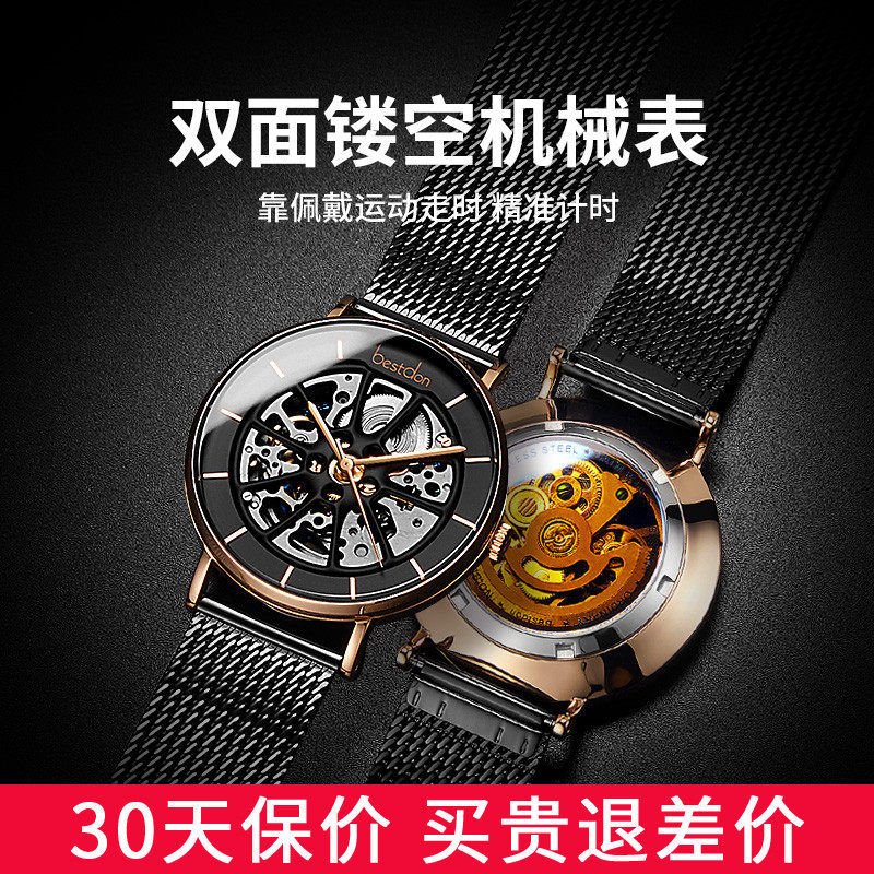 Bangton watch men's mechanical watch automatic full hollow wheel through the bottom heavy industry tide ultra-thin men's brand