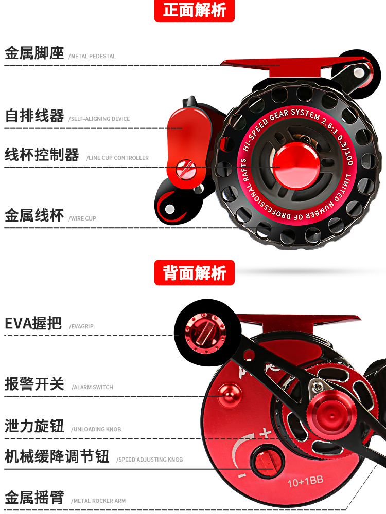 Full metal automatic wire arranging micro-lead raft rod wheel heavy lead magnetic force slow down raft raft rod wheel fish wire wheel with leaky force