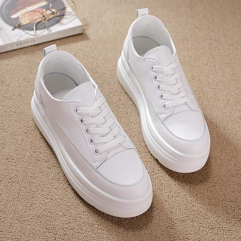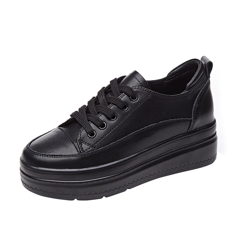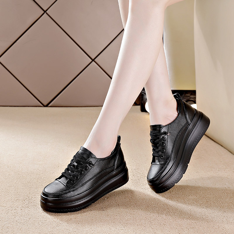 Genuine leather small black shoes Ins street flapping shoes 2022 spring and summer white work hollowed-out heightening muffin shoes women's thick underbag shoes