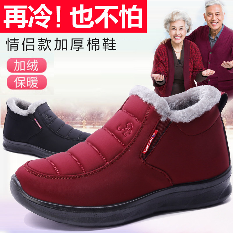 Old Beijing Cloth Shoes Middle Aged Lady Winter Thickening Plus Suede Warm Mom Cotton Shoes Waterproof Snowy Boots Male and female