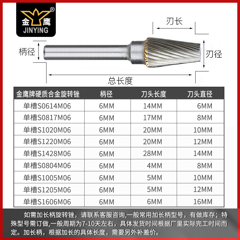 Golden Eagle Cemented Carbide Rotary Filing Sharp Tungsten Steel Grinding Head 6mm Shank S Type Cone Flat Head Shaped Metal Polished Throw
