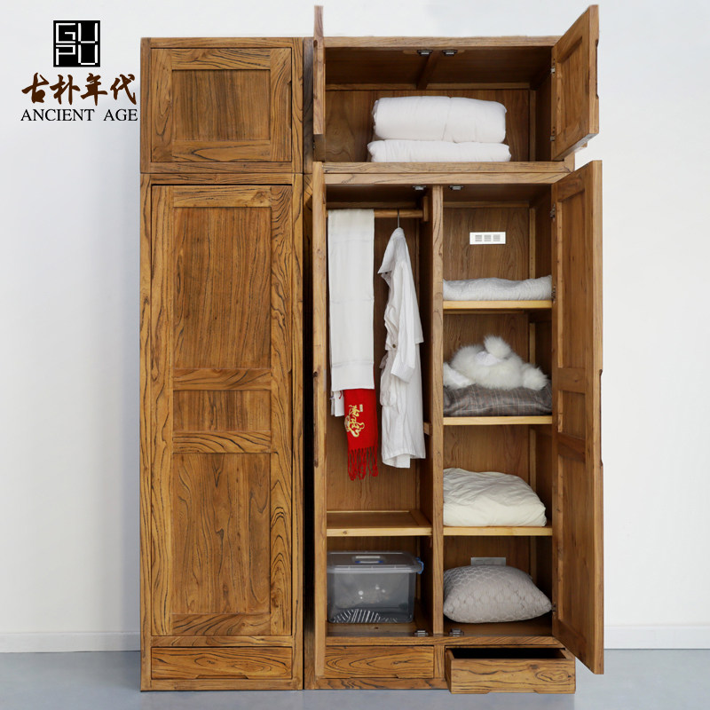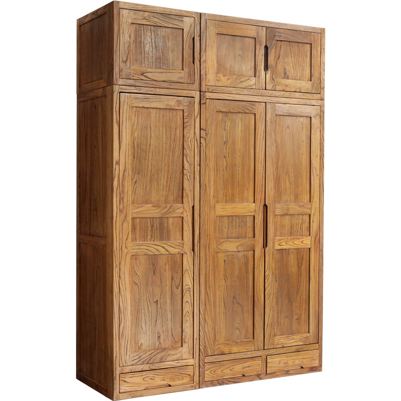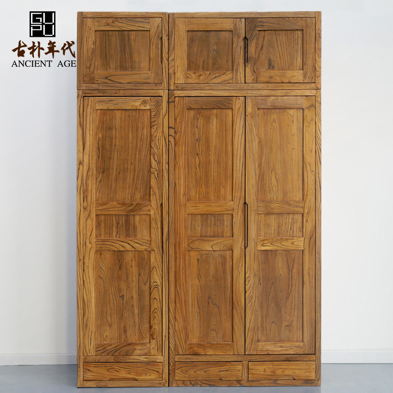 Old elm wardrobe Solid wood large capacity storage economical single and double door combination New Chinese top box cabinet factory direct sales