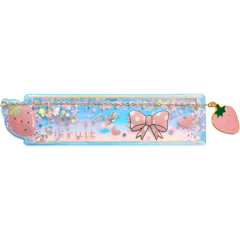 Japan-ROK creative multifunctional flow sand-in-oil ruler Zika Katong Fresh Girl Hearts Cute Bookmarking Pendant Graduated Scale