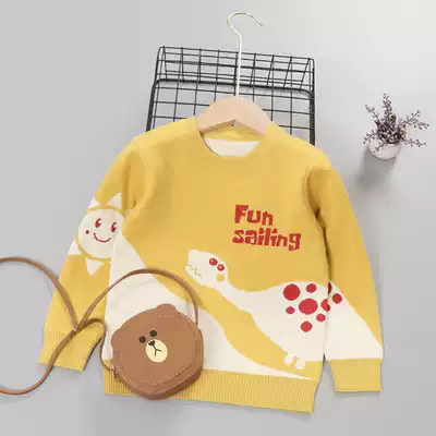 Boy Color Sweater 2021 Autumn Winter Children's Knit Baby Cartoon Letter Little Dinosaur Pullover