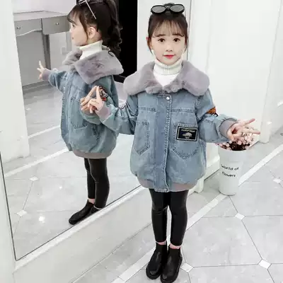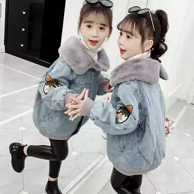 Girls ' winter clothes 2020 winter new Western style middle and large children's children's thickened cotton coat velvet denim cotton jacket