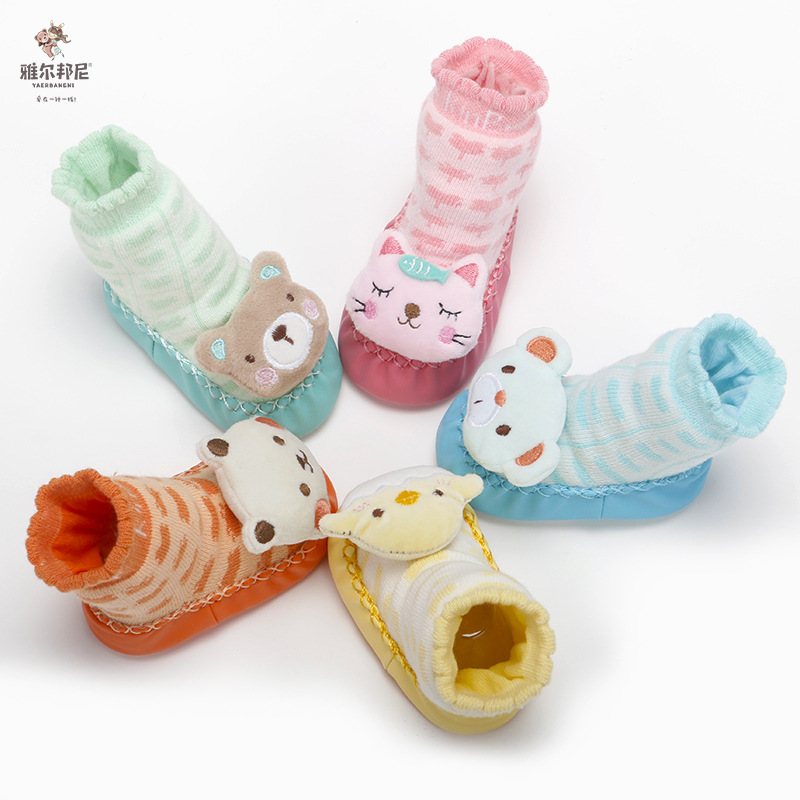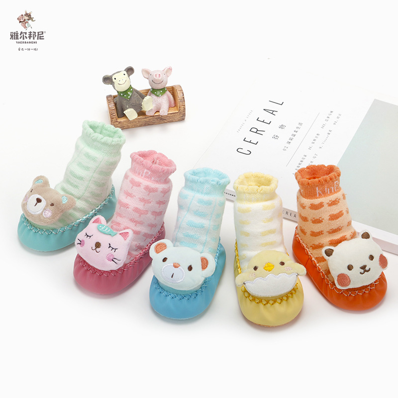 New spring and autumn cartoon baby shoes and socks non-slip leather bottom children's floor socks terry warm baby socks 0-3