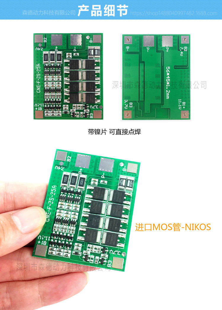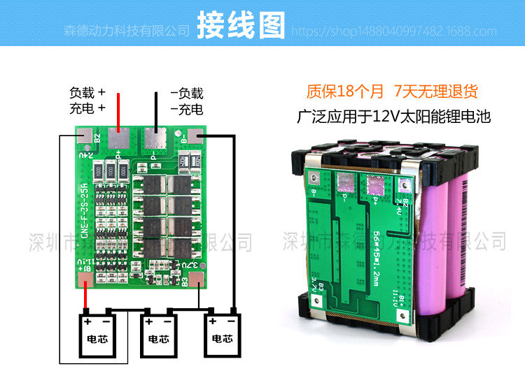 3 strings of 12V18650 lithium battery protection board 11 1v12 6v 25A with balanced overcurrent overcharge and overdischarge short circuit