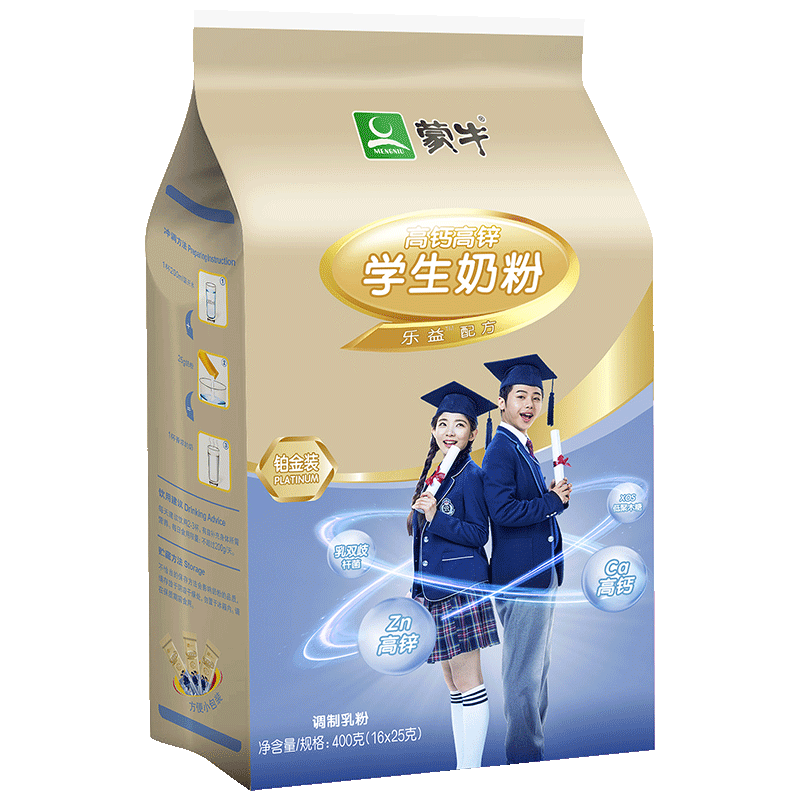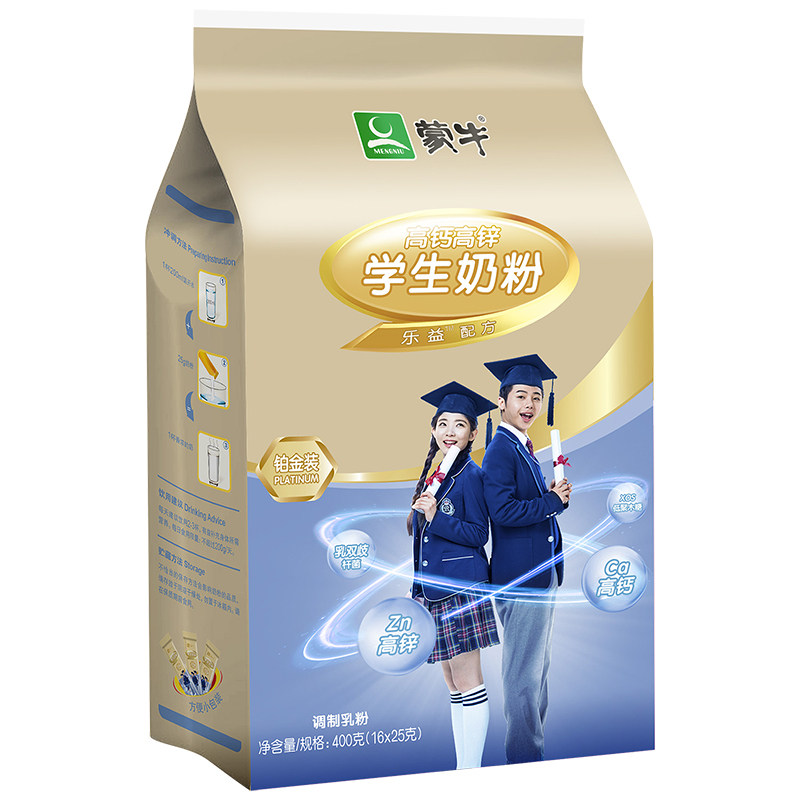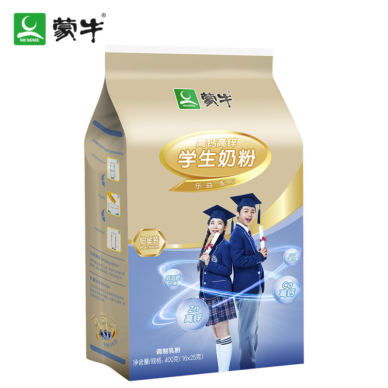Mengniu Platinum Student Milk Powder 400g High Calcium High Zinc Young Men and Women Breakfast Brewing Beverage Cow Milk Powder Bag