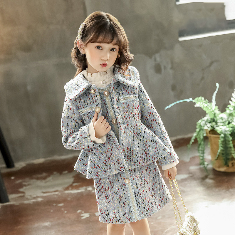 Girls Mao coat 2022 new gas fragrance autumn and winter girls thicken children's clothes long line