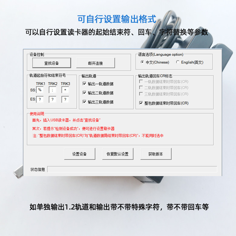 USB connector serial port RS232 magnetic card IC card HID card reader 43MM module black double head