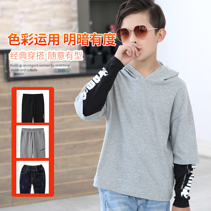 Boy long sleeve T-shirt autumn clothing 2022 new children's undershirt fake two CUHK children's Korean version of the Korean version of the tide blouse