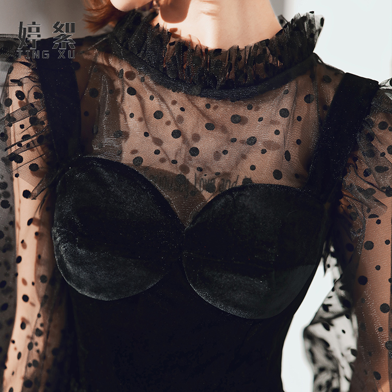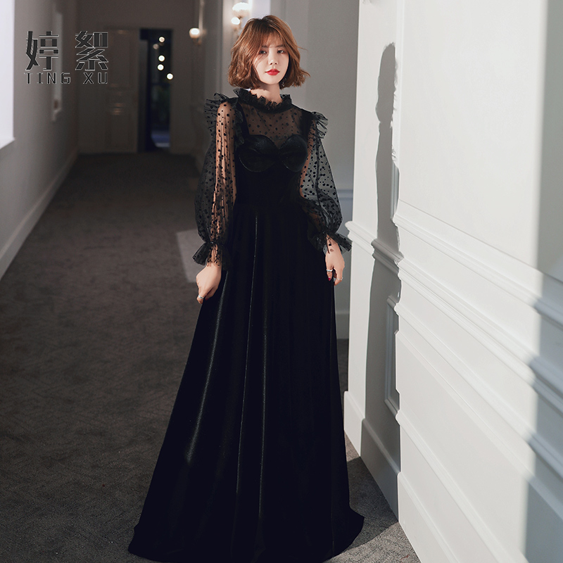 Dress skirt femininity banquet black evening dress 2021 spring host noble and elegant annual party evening dress female