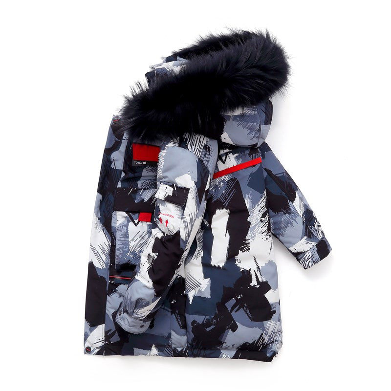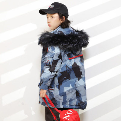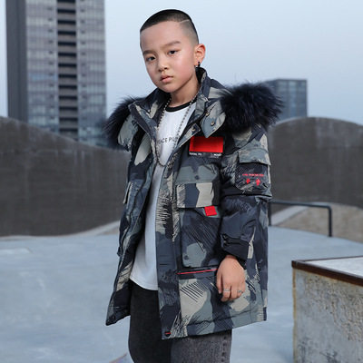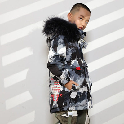 Children suit boy big fur collar camouflated down jacket 2019 Winter new thickened tooling white duck suede coat large size