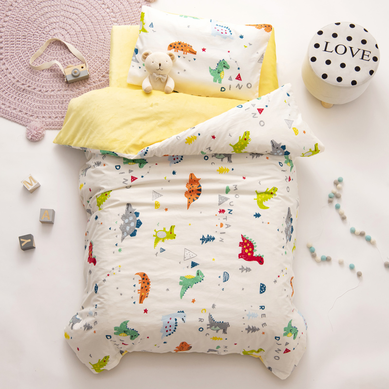 Kindergarten quilt three-piece cotton plus velvet quilt cover Autumn and winter coral velvet thickened children's nap quilt six-piece set