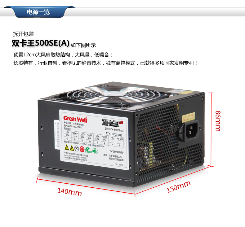 Great Wall Power Dual Card King 500SE Professional version Desktop Host Power Rating 400W peak 500W mute