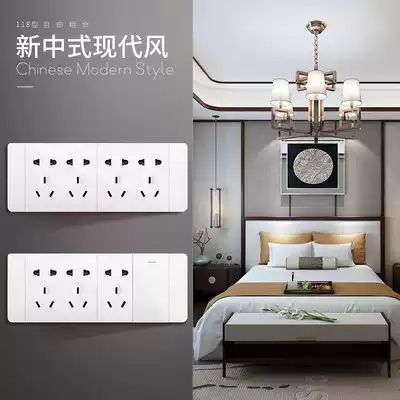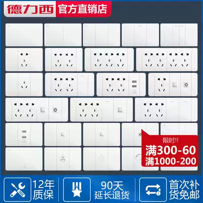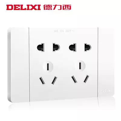 Delixi 118 type switch socket large panel household wall type large plate two position two insert 10 ten holes 6 six six holes concealed