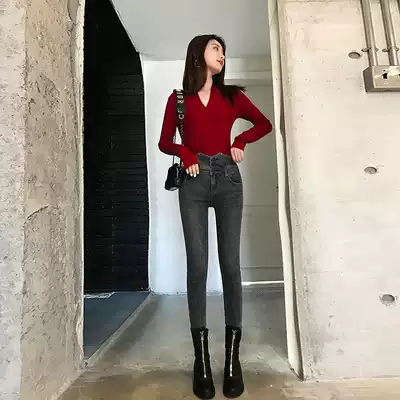 Spring and Autumn High Waist Denim Pipe Pants Women 2021 New Korean Skinny Pants Slim Slim Stretch Pencil Pants