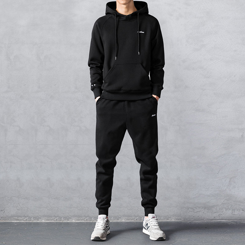 8102 grey sweater black pants with hat cover head winter style garnter 8102 grey sweatpants black pants with hat cover head fall 8102 Lido hat sleeve head autumn section 8102 Lido hat sleeve head garnter