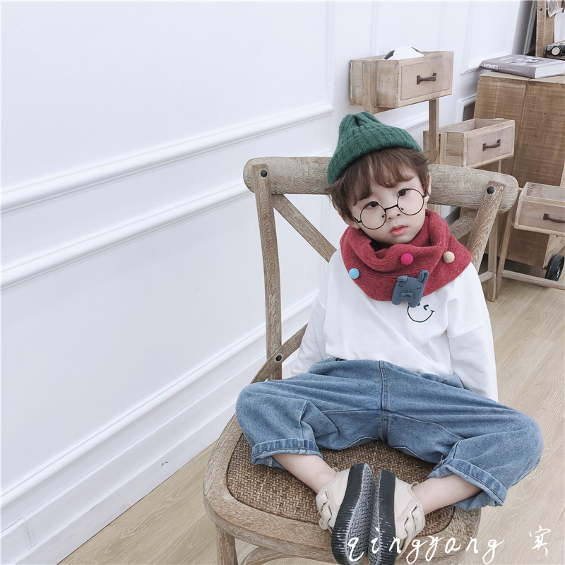 Baby bib winter foreign style warm Korean girl knitted neck sleeve male Winter children wool scarf child tide