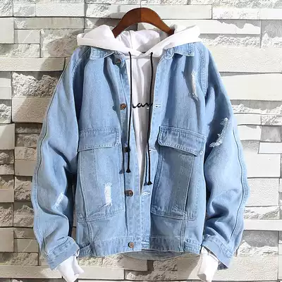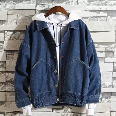 Tide brand stitching lapel casual jacket men Korean version ulzzang thin denim jacket harbor wind ins loose top