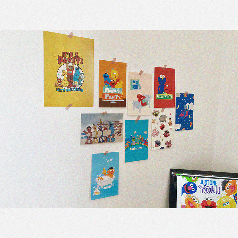 ins Sesame Street cartoon poster postcard Korean photo props Room wall illustration decorative card new
