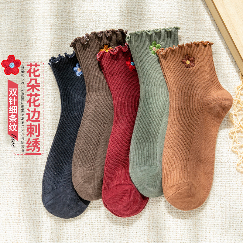 Socks Women in the middle of the box Sox spring and autumn style ladies' day department small flowers spring and summer stockings net infrared wearing female socks cotton socks