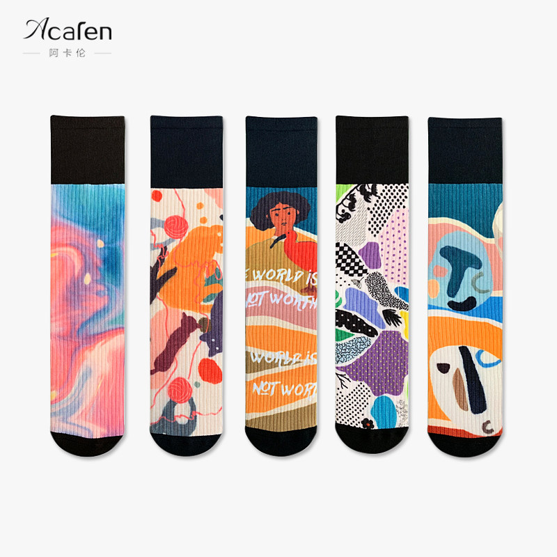3D printed net red Long Sox children Tide Street Calf Socks Jk Midbarrel Socks Women and America Piles Stockings Stockings