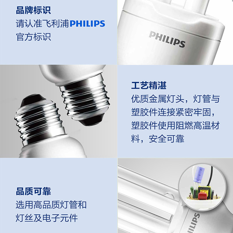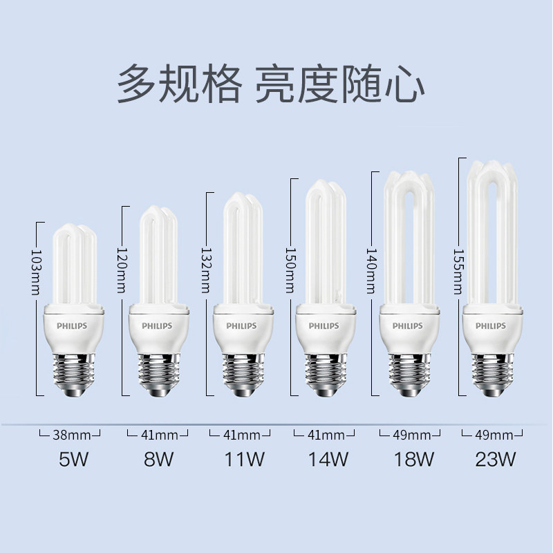 Philips 2U energy-saving light bulb E14E27 screw mouth spiral bulb U type lamp tube home lighting electric bulb super bright