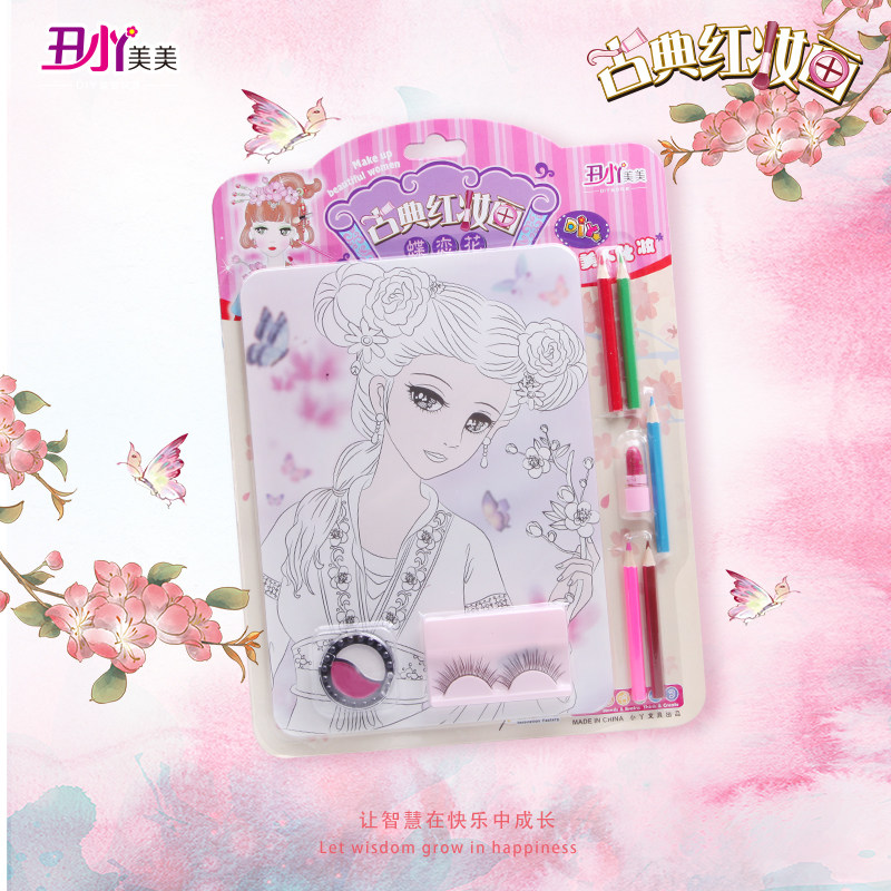 Ugly Little Girl Classical Red Makeup Painting Children Color Makeup Painting Girl Drawing Makeup Toy DIY Graffiti Painting Painted Artisanal-Taobao