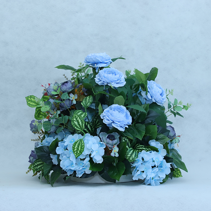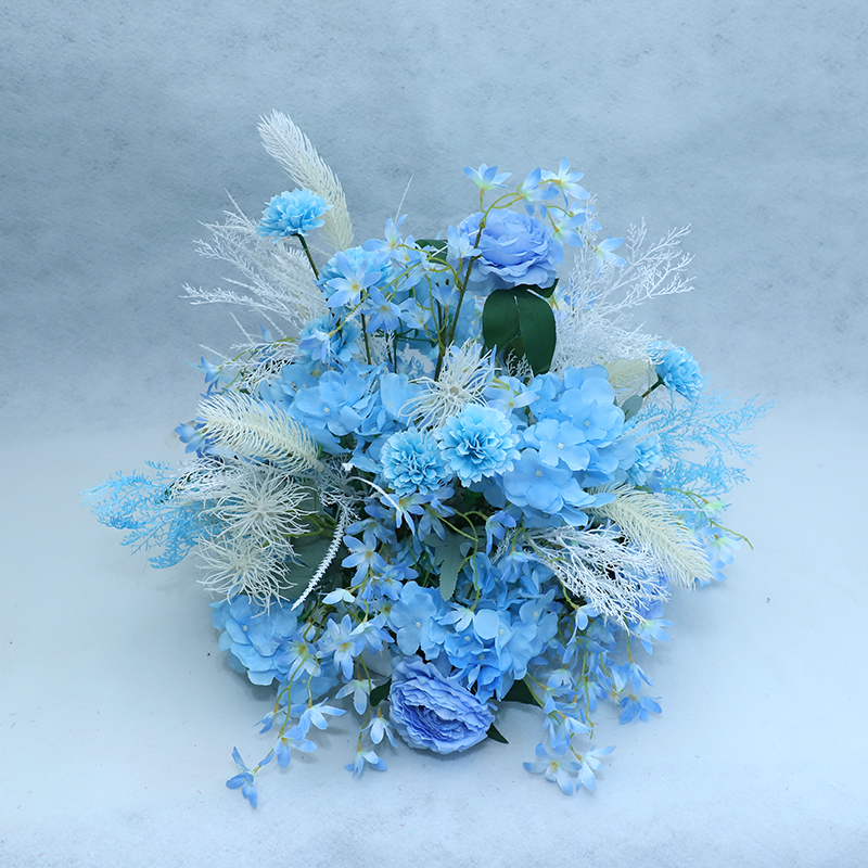 Wedding road leading flower row wedding T stage decoration flower row wedding hotel long strip simulation blue line flower row
