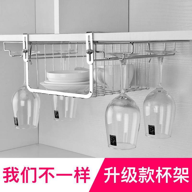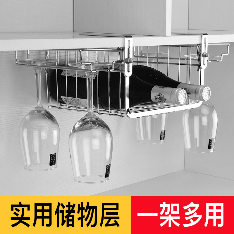 Nail free to put wine with hanging cup holder-Stainless Steel Color Free to put up a wine style hanging cup holder-ancient bronze color nail free to put wine style hanging cup holder-black stainless steel color-upgraded with nail-free shelf 6 350m