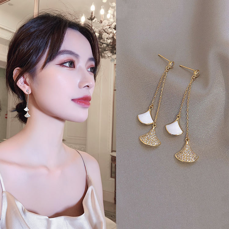 Earrings new tide Long version Temperament Earshot Female Pure Silver Brief 100 hitch a small ear pendant superior atmosphere 2021