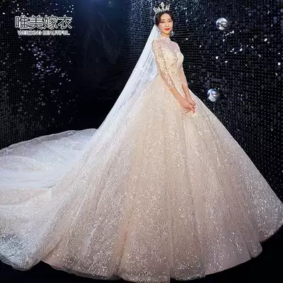 Long sleeve wedding dress 2021 new bride female martial dream Super fairy Hepburn thick arm thin tail dress