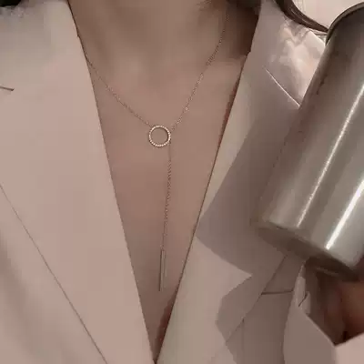 V collar recommended with simple long version of necklace 925 sterling silver round 1 word chest decoration refined sweater