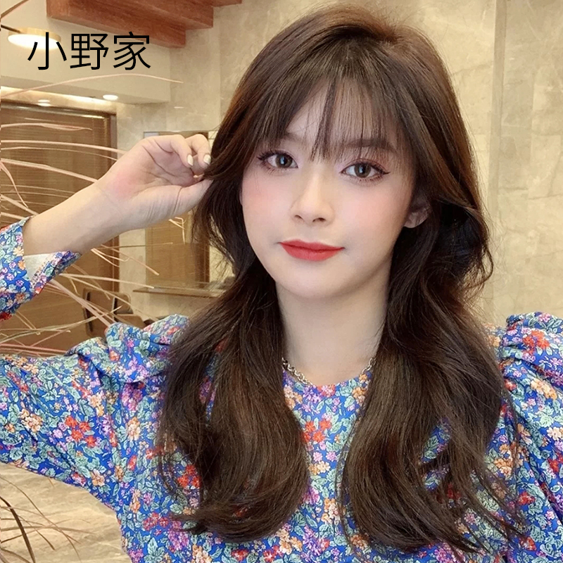 Onoya wig female long curly hair Air bangs wave curl real hair fluffy natural net red full headgear
