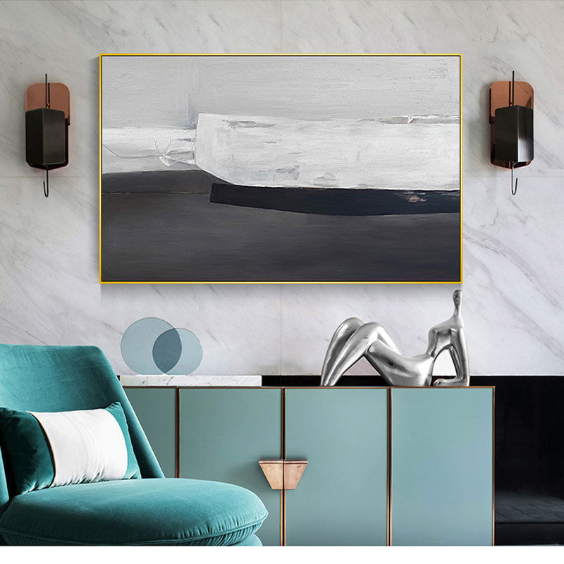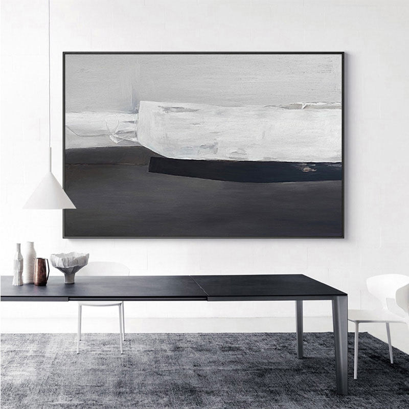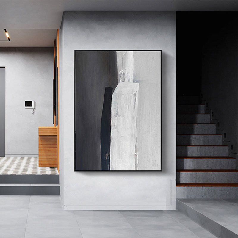 Simple modern light luxury abstract black and white hand-painted oil painting concave-convex mechanism porch living room background sample room decorative painting