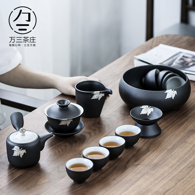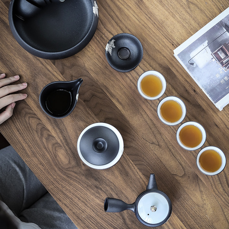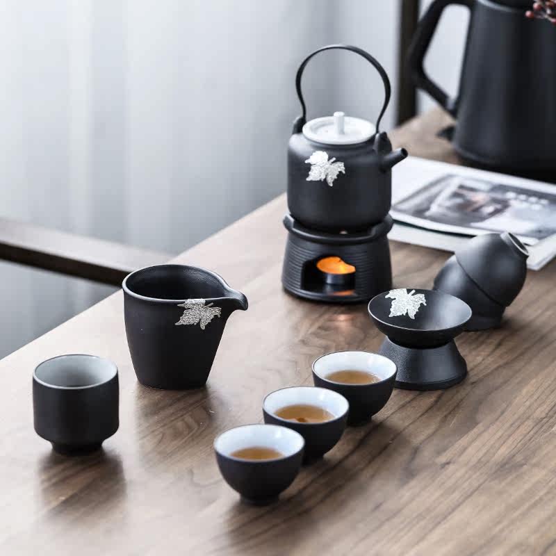 Black Tao Yilai Qianqiu Side to take the pot 9 pieces of gift box with black pottery One leaf to know autumn conical pot 9 pieces of gift box with black pottery One leaf to know autumn Ti-beam pot warm tea ceremony boxed with black Tao One leaf know autumn hand deacon 13 pieces of gift box