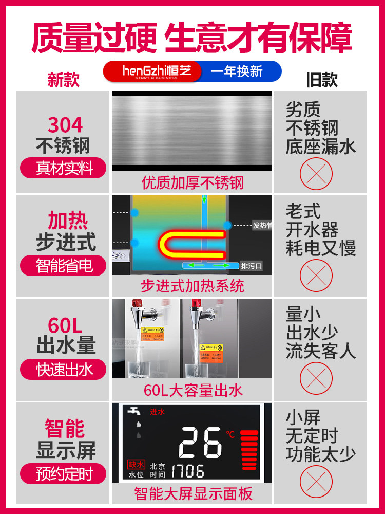 Hengzhi Stepping Type Water Boiler Commercial Milk Tea Shop Full Automatic Electric Heater Water Boiler Big Capacity Boiled Water Machine