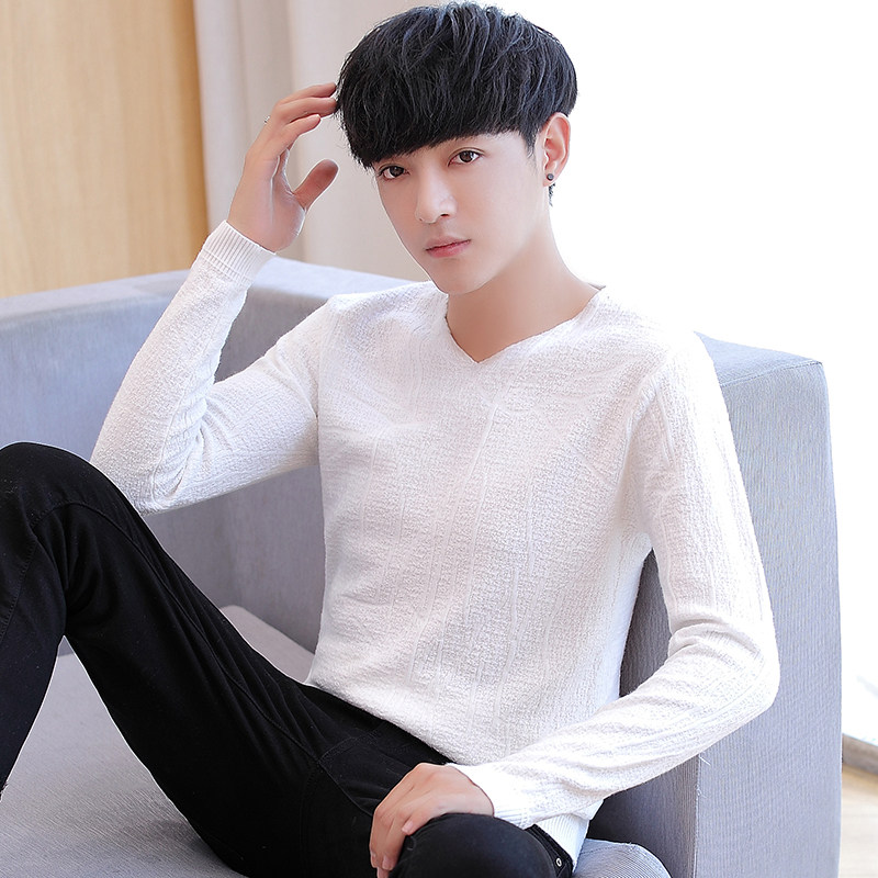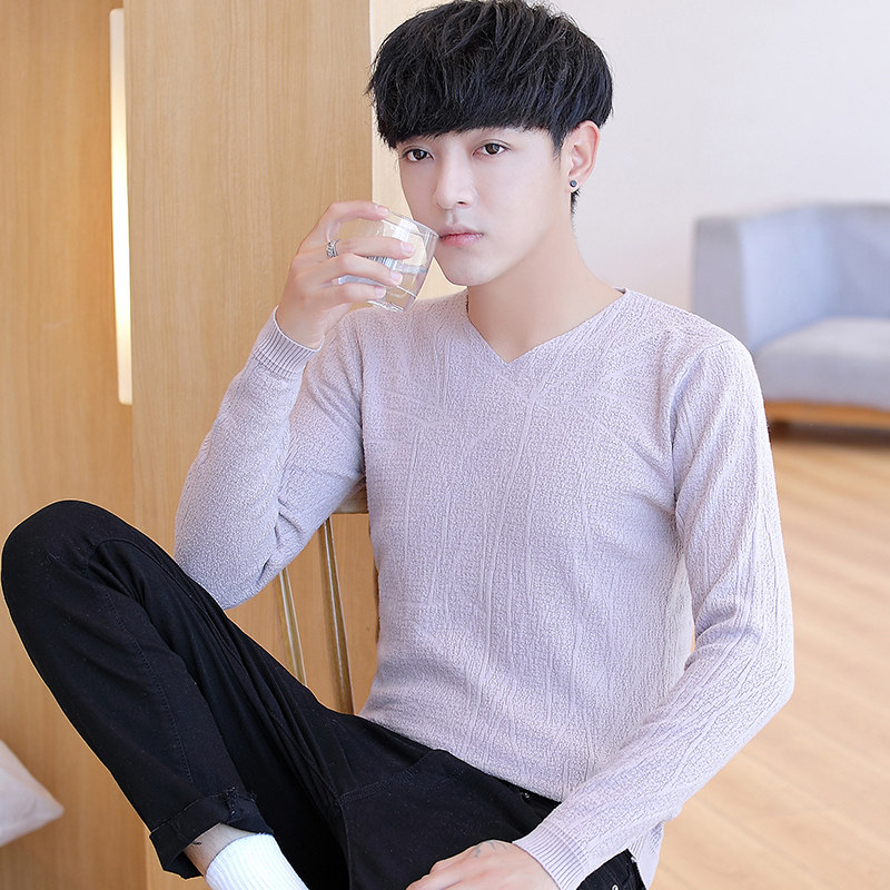 Autumn Winter Thin sweater men's V collar knit undershirt Korean version with pure color 100 lap trendy men's clothing line-Taobao