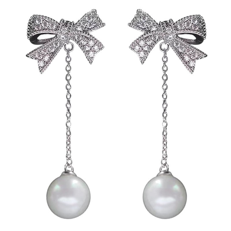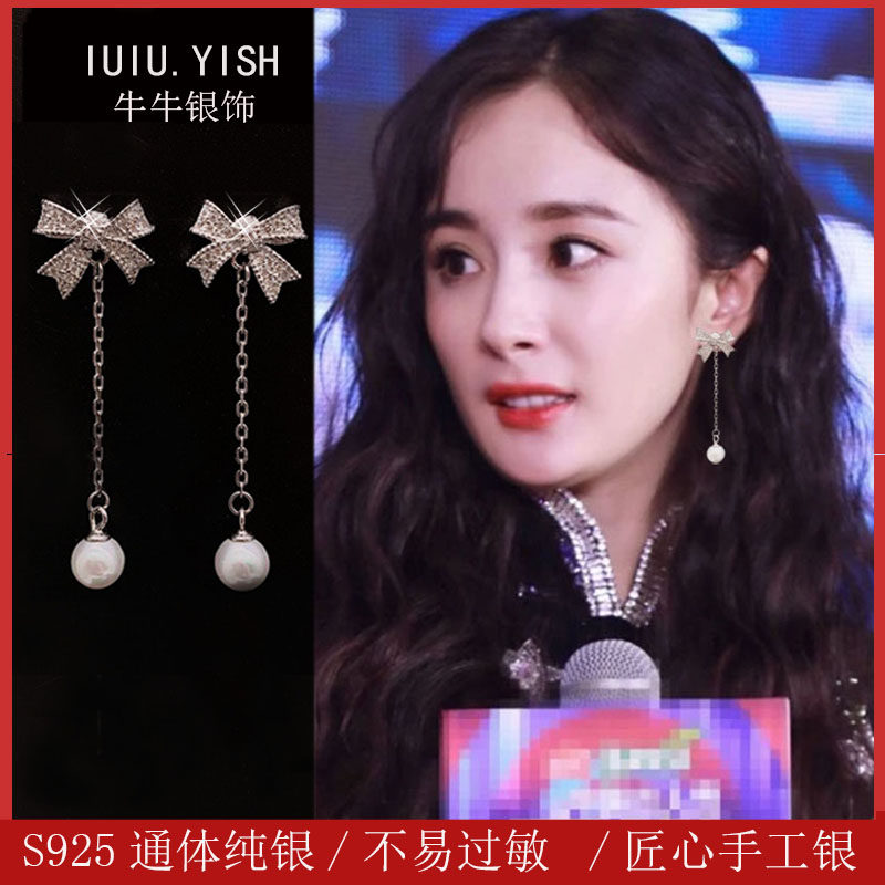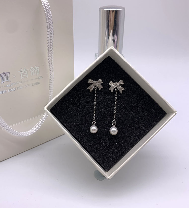 Bow stud earrings femininity Korean simple super sen net red earrings 2022 new trendy women sterling silver pearl earrings