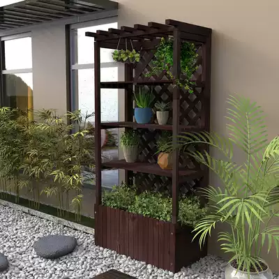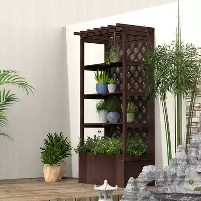 Carbonized anticorrosive wood fence climbing vine balcony flower stand grid with flowerpot outdoor courtyard partition multi-layer shelf
