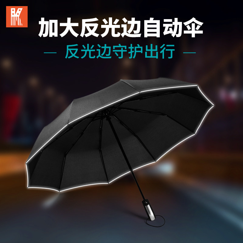 Fully automatic umbrella folding enlarged umbrella men and women parasol UV protection portable safety reflective edge