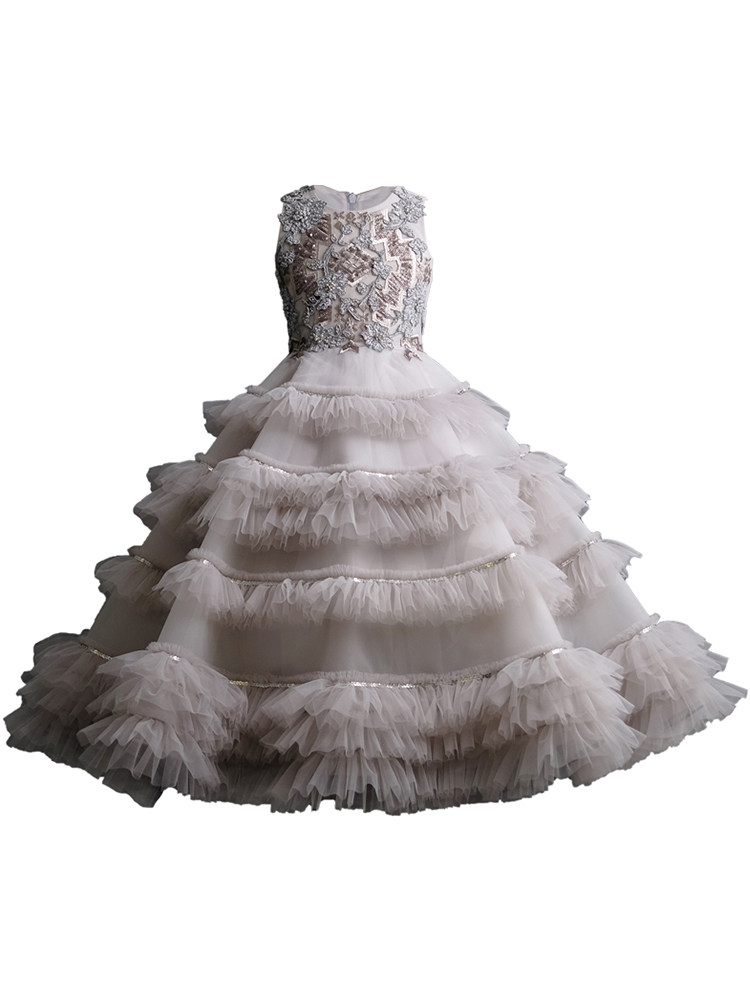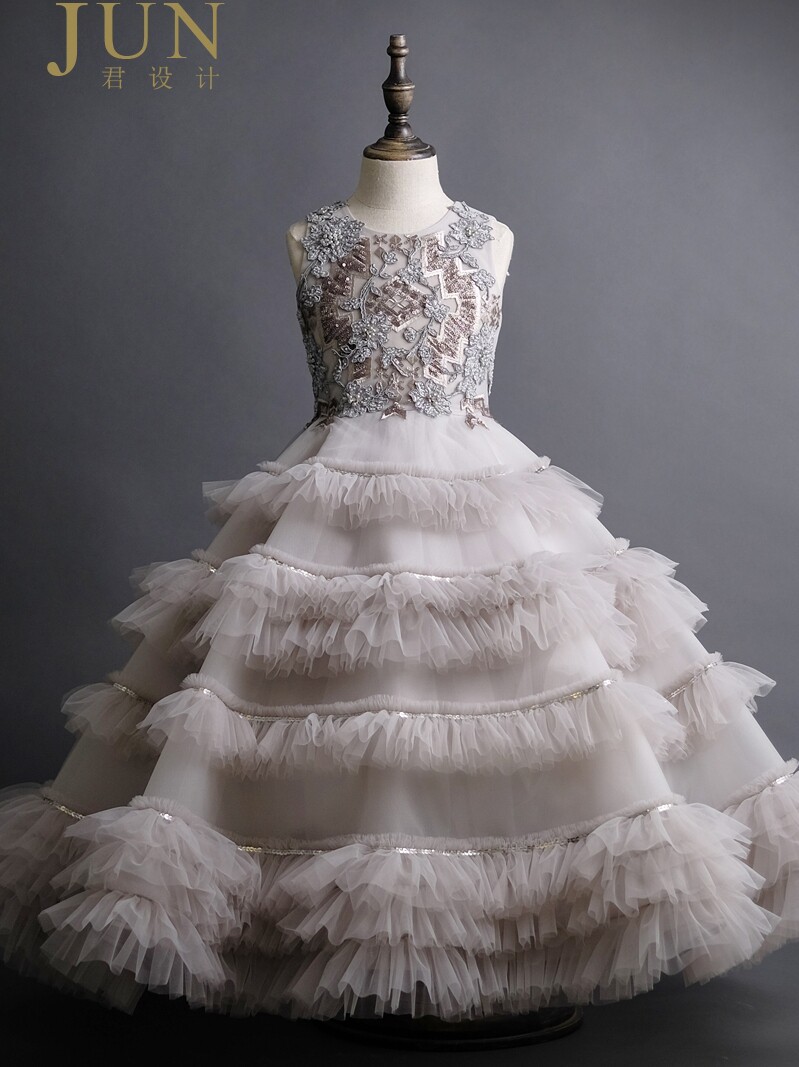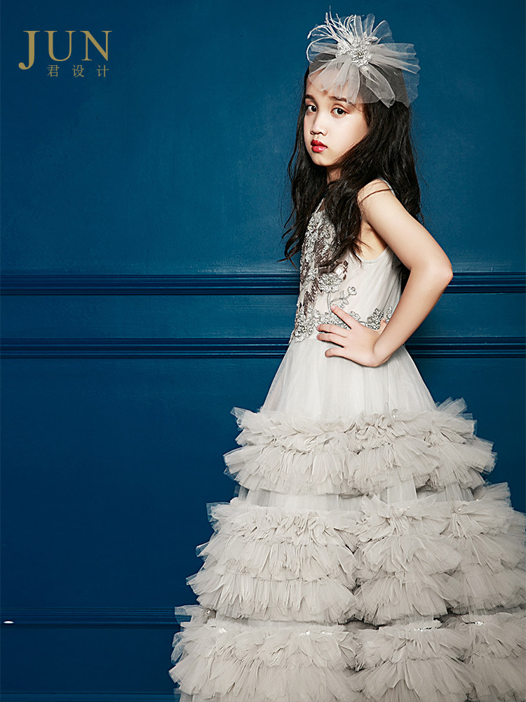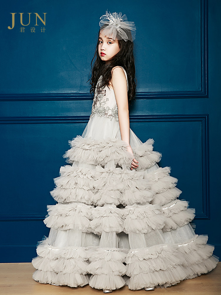 Jun Design Girls noble princess dress fluffy evening dress catwalk children's cake skirt birthday long dress skirt