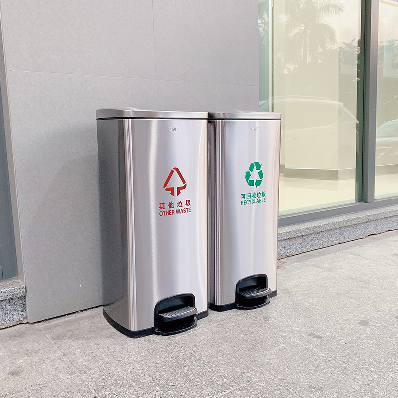 Custom Unit Business Hotel Office Stainless Steel Pedal Dry Wet Sorting Trash Can with lid Large capacity