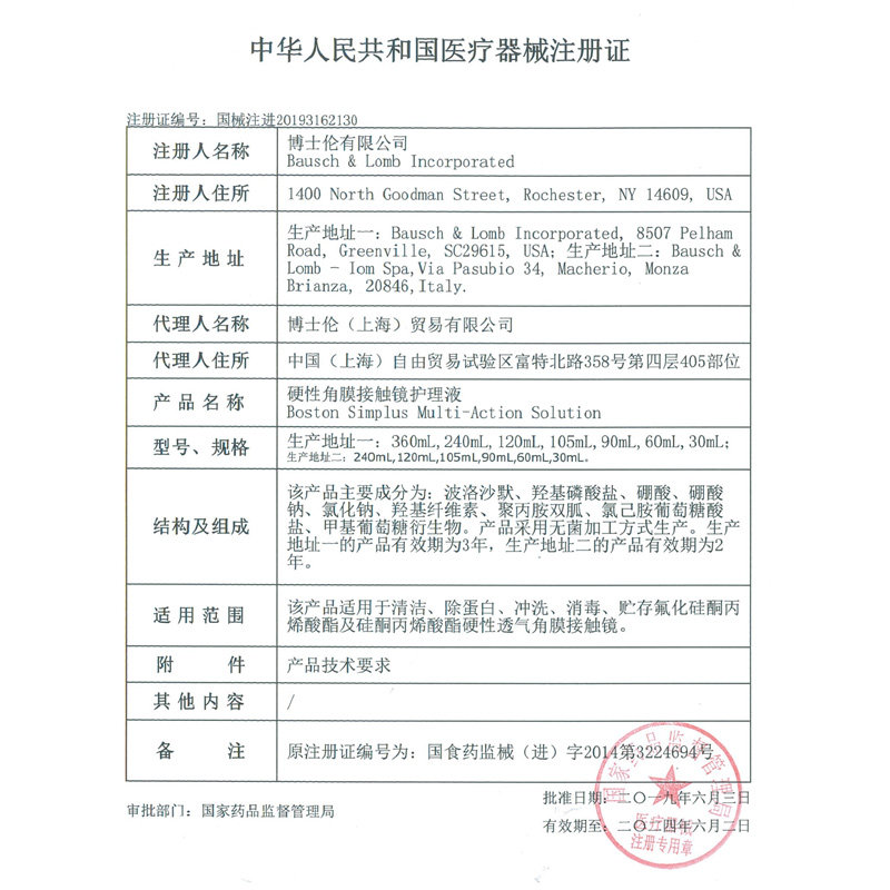 Bausch & Lomb Boviston advanced RGP rigid contact lens lubricant 10ml*2 orthokeratology ok lens