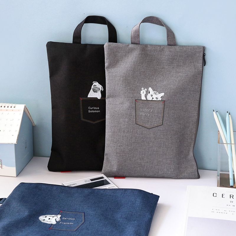 Large capacity student tutoring subject bag Book bag Information canvas storage bag Financial invoice Hand-held zipper bag