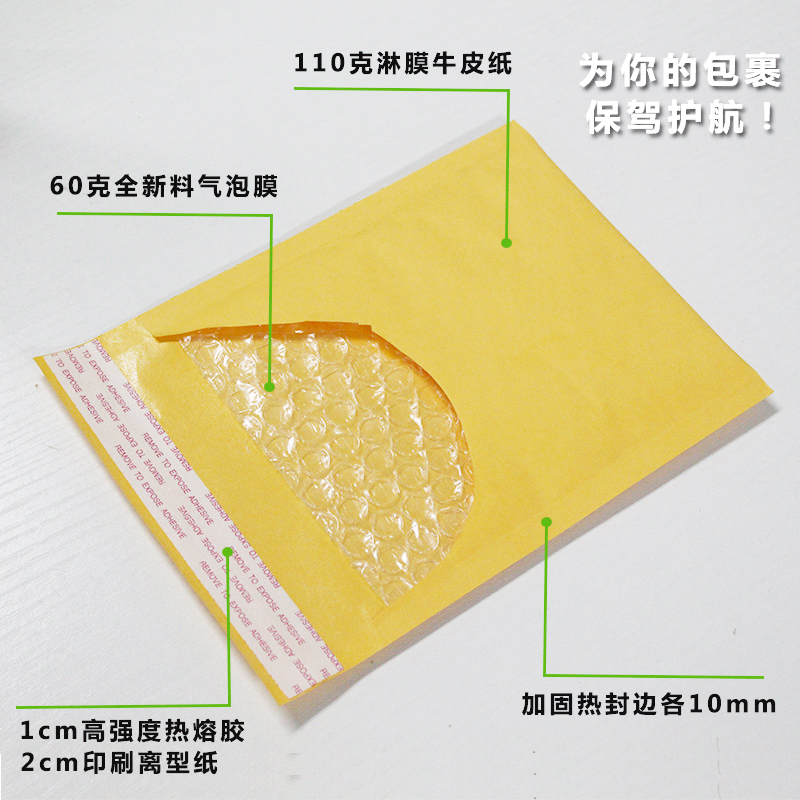 Yellow kraft paper bubble bag thickened express bag packaging foam self-sealed anti-seismic wreck packaging custom white envelope bag