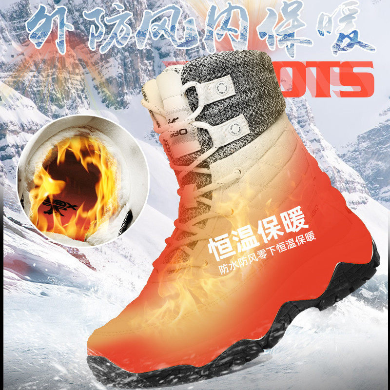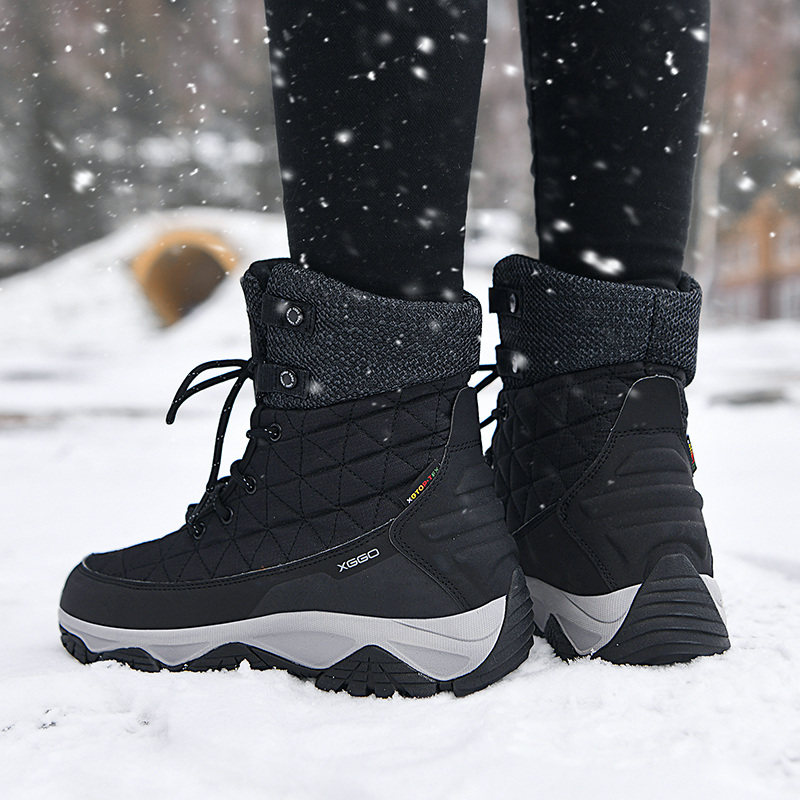 Outdoor Snowy Boots Women Waterproof Non-slip Plus Suede Thickened Northeast Cotton Shoes Snowy Township Tourist Couple High Help Ski Shoes Man-Taobao