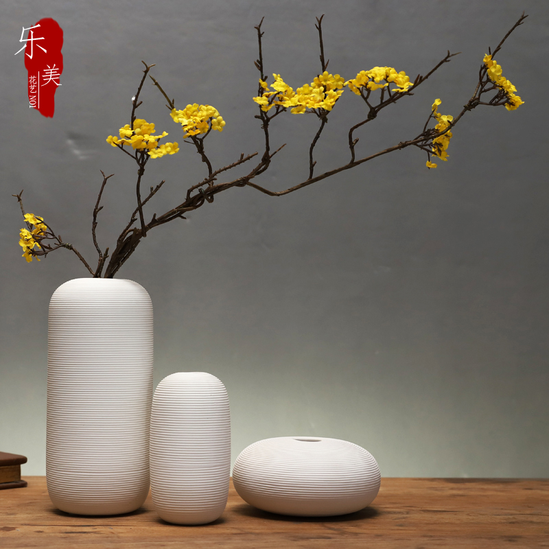 Modern minimalist white thread ceramic vase swinging piece New Chinese living room floral floral home soft adornment